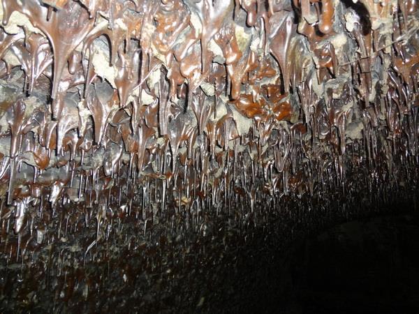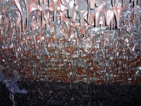 Это засстывший расплавленный кирпич. Естьтв системе фортов Кронштадта такой, в котором кирпич оплавился и стек. По одним рассказам - туда в подвалы сливали излишки мазута, которые как бы флот израсходовал, а он не израсходован вот тут и заныкали, а потом загорелось, по другим - испытывали в форте зажигательные смеси. Но факт налицо - потеки кирпича.