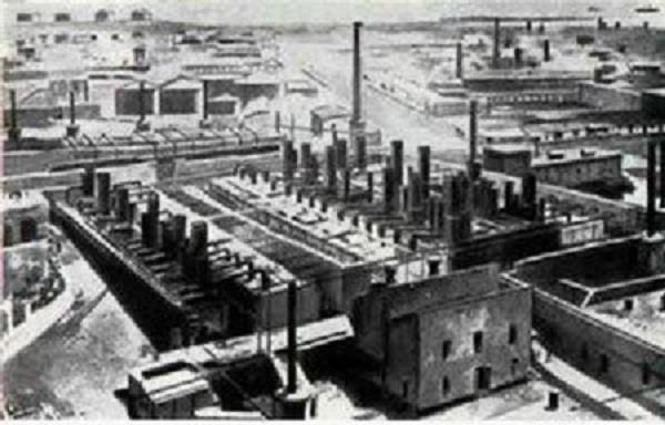 Сконструированная на одном из бакинских керосиновых заводов фирмы «Братья Нобель» в 1883 г. В.Шуховым и И.Елиным кубовая батарея для непрерывной перегонки нефти