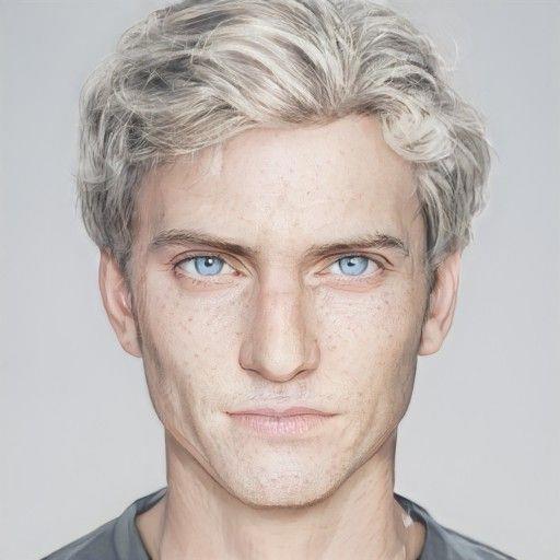 В этот раз результат меня совсем не устроил. Получился просто один из высших даргов, у которых чем сильнее родовой дар, тем светлее волосы. А вот с красотой вышло не совсем. Обаяния для главного героя в этом портрете не хватило. Я пока слишком плохо владею возможностями нейросети.