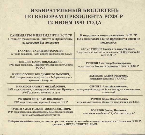 Бюллетень на выборах президента РСФСР: