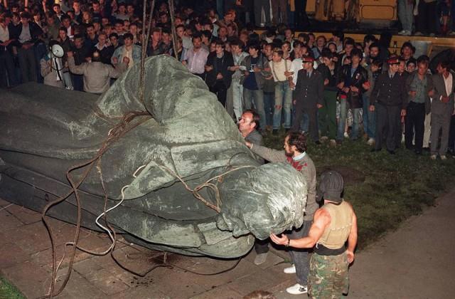 Другим наглядным символом свержения советской власти и победы "демократической революции" стал снос толпой 22 августа памятника Феликсу Дзержинскому в Москве (фото Анатолия Сапроненкова):