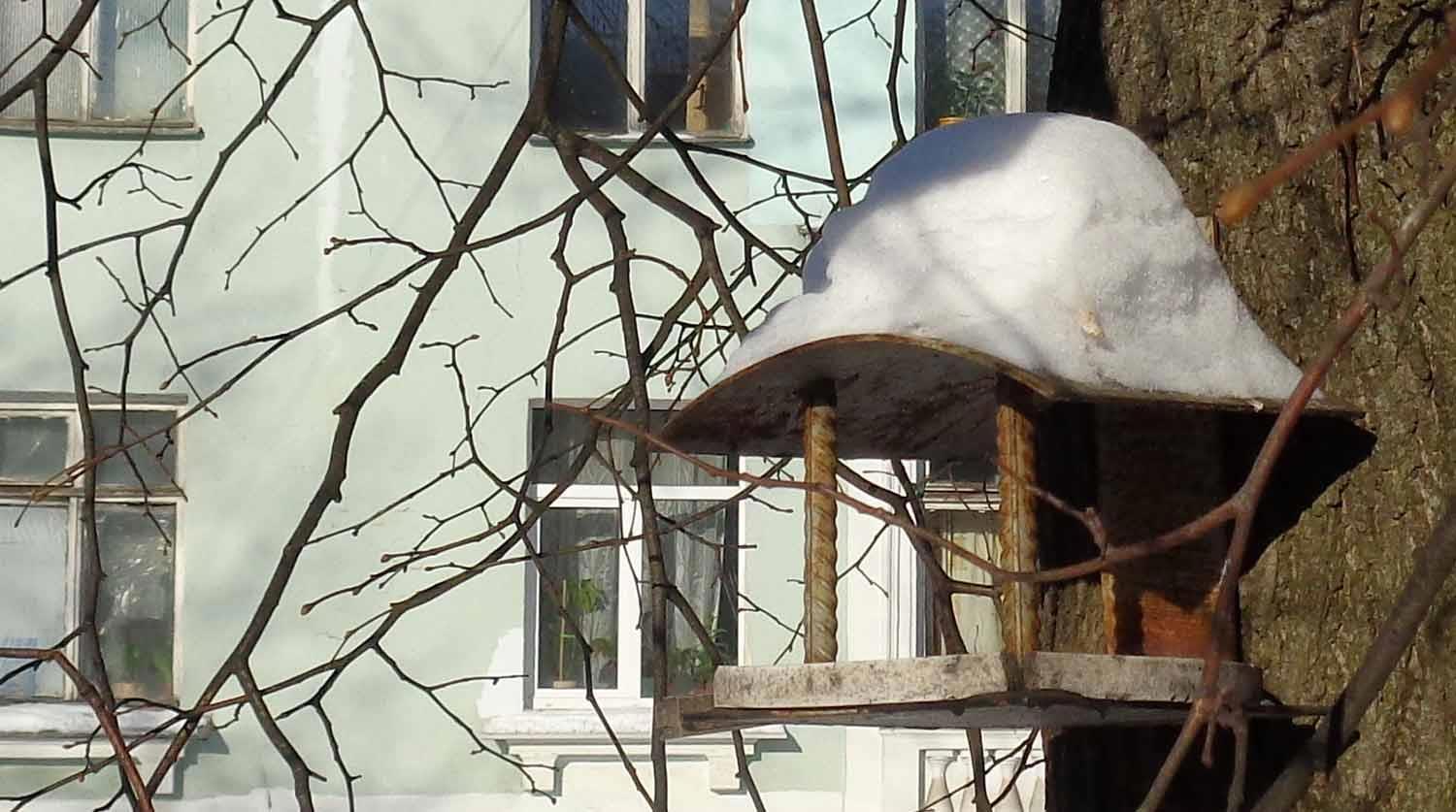 На фото - кормушка для птичек. Такая... надёжная, чтобы уж точно не сломалась))