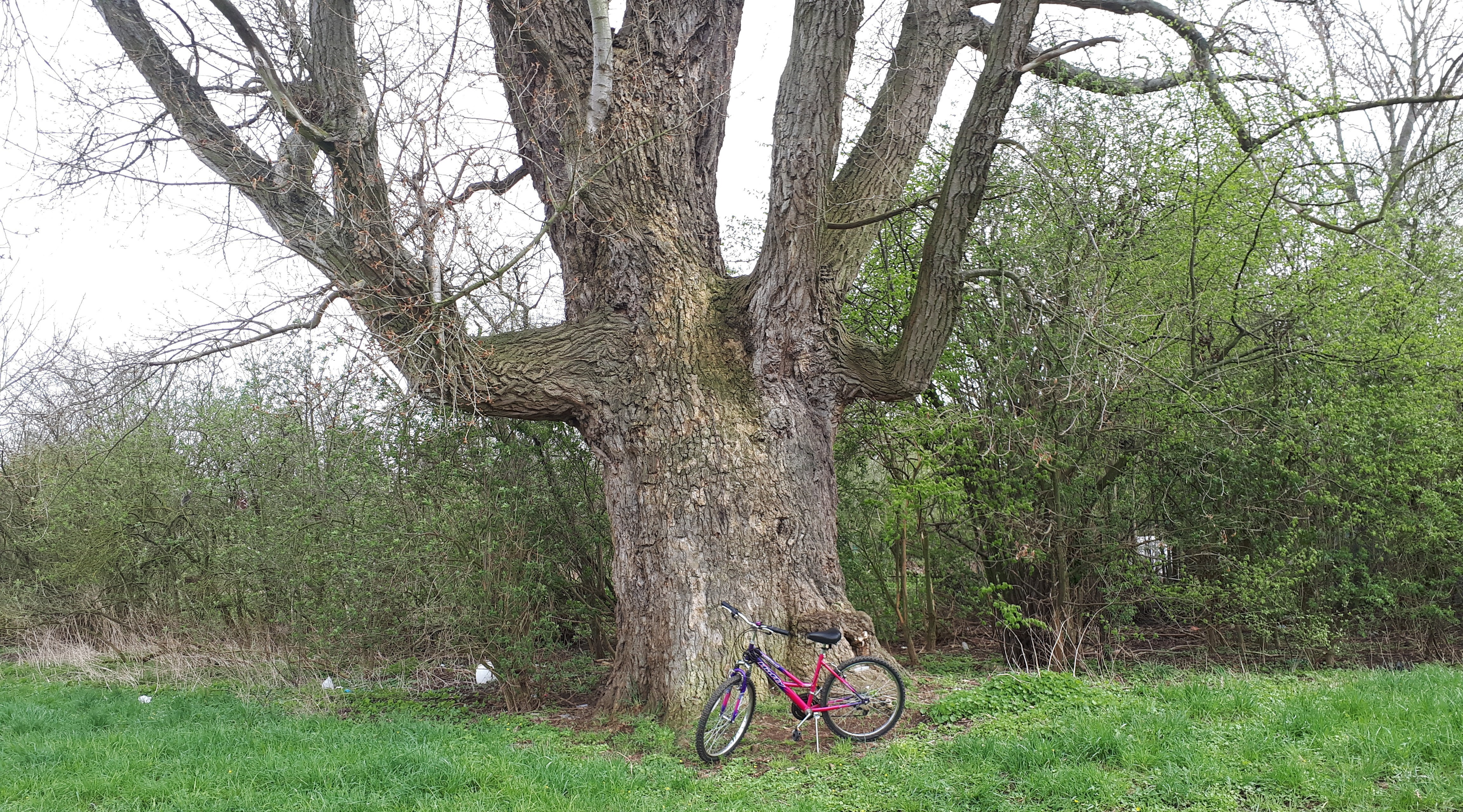 Вид с поля на мой дом, там в дали дерево старое, которое я позже сфоткала ближе.