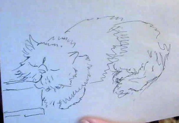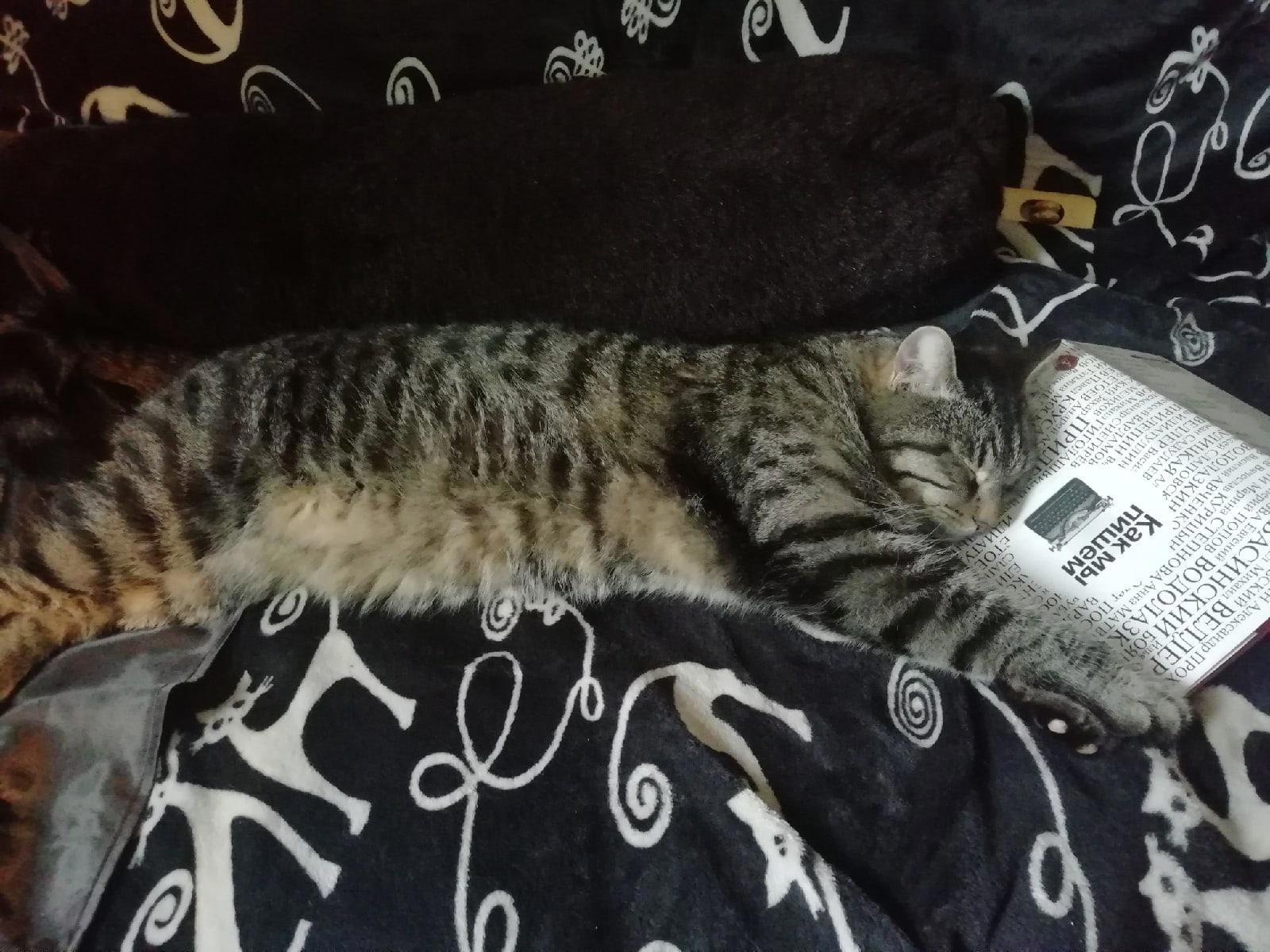 Ангел считал своим долгом уложить меня спать. Если засиживалась, то садился напротив и глядел в лицо: брал на измор. Когда ложилась, пристраивался на подушку рядом, клал голову и/или лапу на лицо и мурчал. О, это было непередаваемо! Там было не просто обычное мурчание: он хрипел, звенел. свистел, рокотал...