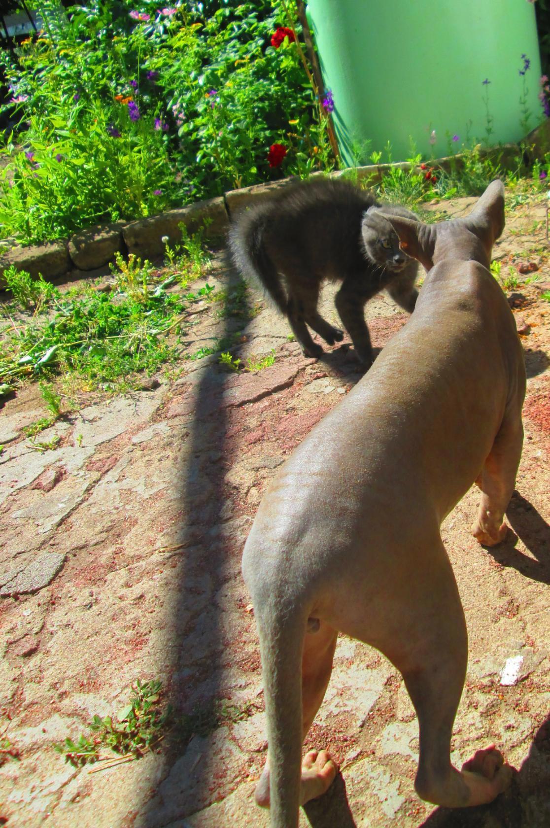 Это он храбро защищает территорию от соседского кота породы сфинкс: