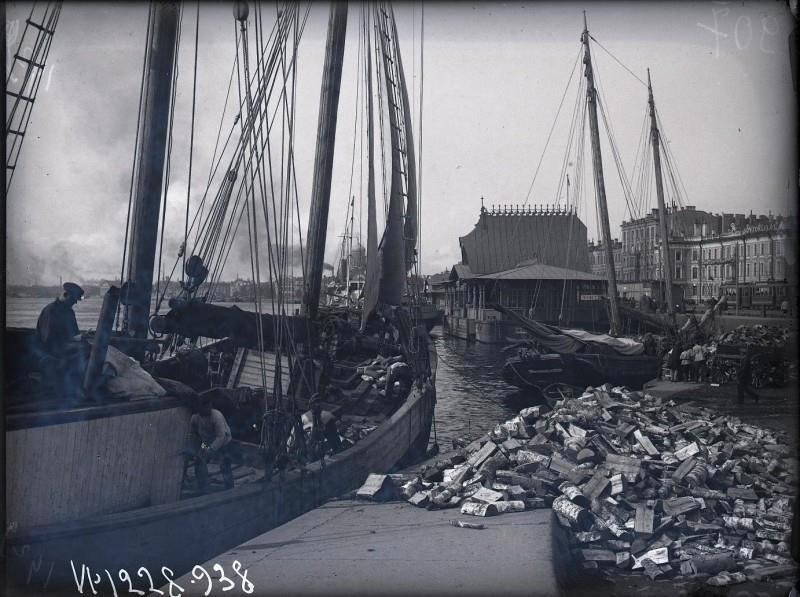 Автор: Николай БергЛенинград. 1929 г. На набережной лейтенанта Шмидта. Финские лайбы, привезшие дрова.