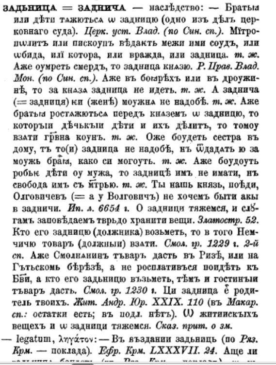 Я думаю, вы уже догадались, что такое "задница" в древнерусском языке. Если еще не догадались, помедлите немножко и подумайте еще раз: задница - это то, что после смерти человека кому-то передается. Конечно, это "наследство"! То есть, то, что усопший оставляет позади себя.