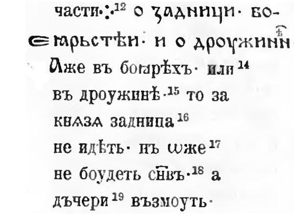 Примечание: фрагменты "Русской правды" - Троицкий список, 2ая пол. XIV века
