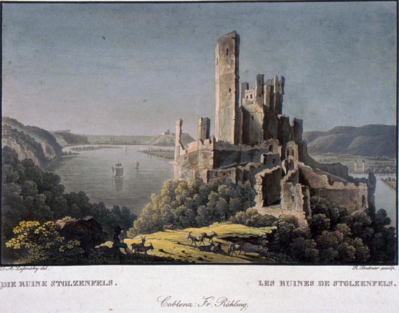 Развалины замка Штольценфельс в 1830 году.