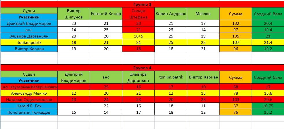 Из каждой группы в финал выходит один автор, набравший абсолютный максимум среди своей пятерки. Но финалистов у нас будет пять! Пятый участник определяется среди не вышедших из групп марафонцев по максимальному среднему баллу.
