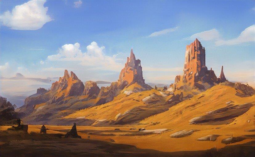 Что касается пейзажей, то в Дарша скудная растительность, да и просторы Пустоши не ах на виды. Потому я приготовила вот эту картинку местности, чтобы описать общую атмосферу: