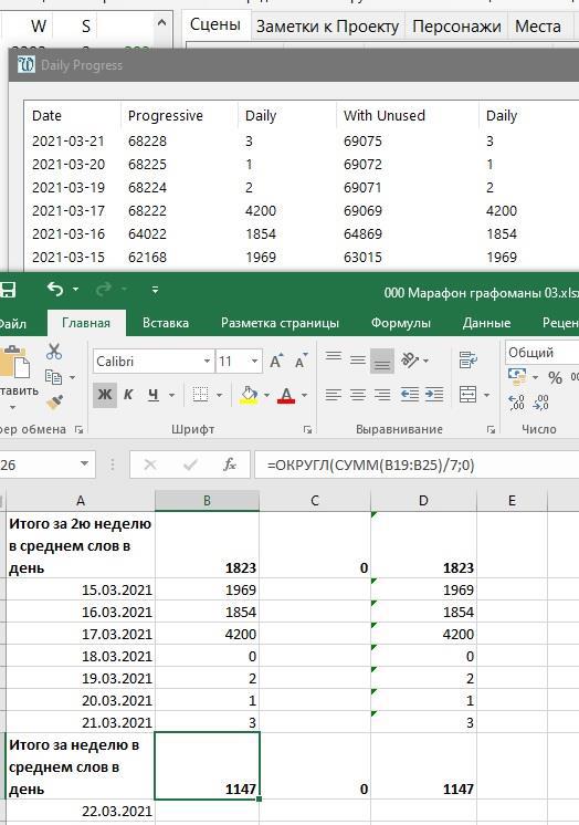 Заявленные 2 тыс слов в день в среднем не получается, хотя есть и стахановское перевыполнение плана, есть и провалы. Но в любом случае результат лучше, чем за первую неделю. И только по отчету поняла, что второй проект у меня заброшен от слова "совсем"