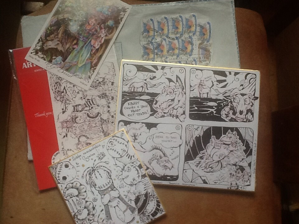 Оригинал комикса про кваржика, оригинал карточки с Пугатошкой, офигительной крсоты металлических цветов собирательская открытка - я пыталась ее отсканировать - а вот фигушки мне в рыльце. Открытка переливается как бриллиант на солнце. Понятия не имею как это фотографировать вообще возможно...