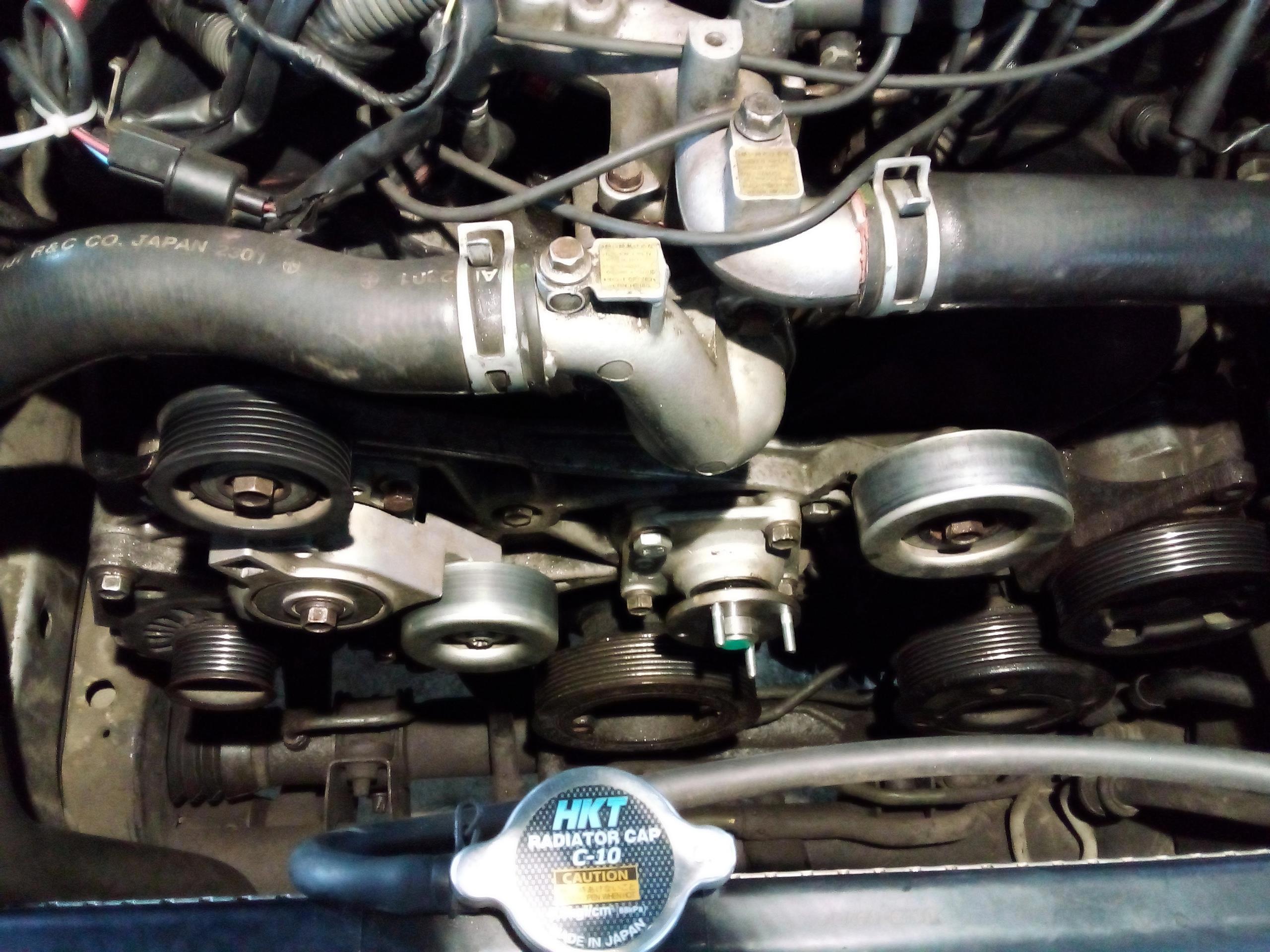 Это ещё тут нет диффузора на радиаторе, иначе б возни было чуть-чуть больше. Для начала снимаем ремень навесного оборудования.