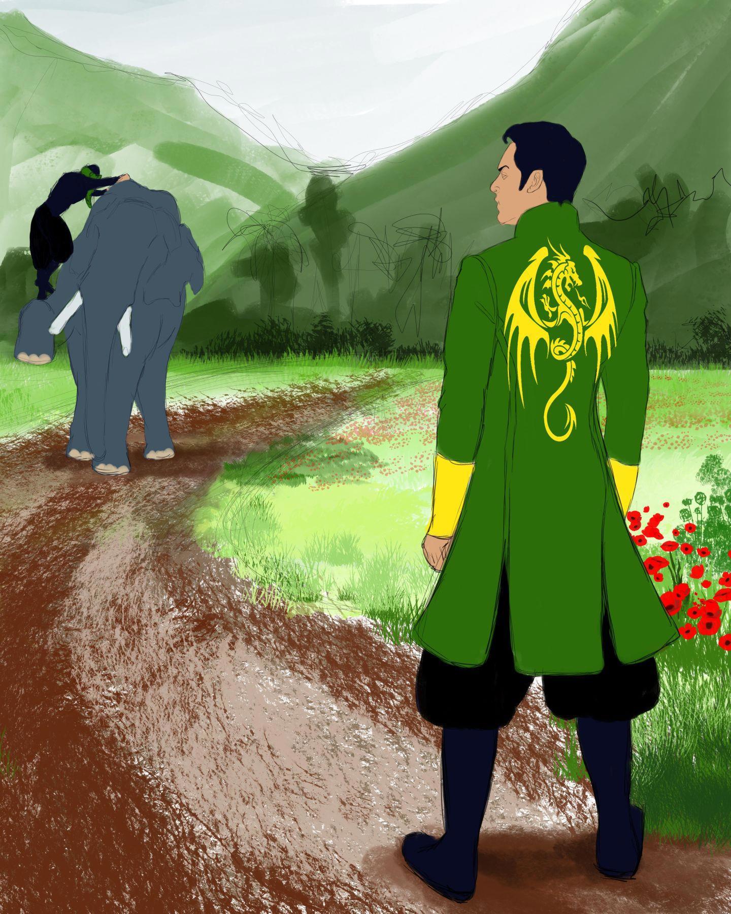 с ними там все не так уж просто. Но вообще сеттинг у романа шикарный, даже беглый взгляд дал массу идей для картинки. Тут референсы пришлись очень кстати. Шесть фоток для одной одежды, четыре - для слона и восемь - для окружения. Больше всего, мне кажется, тут удалась композиция и слоник