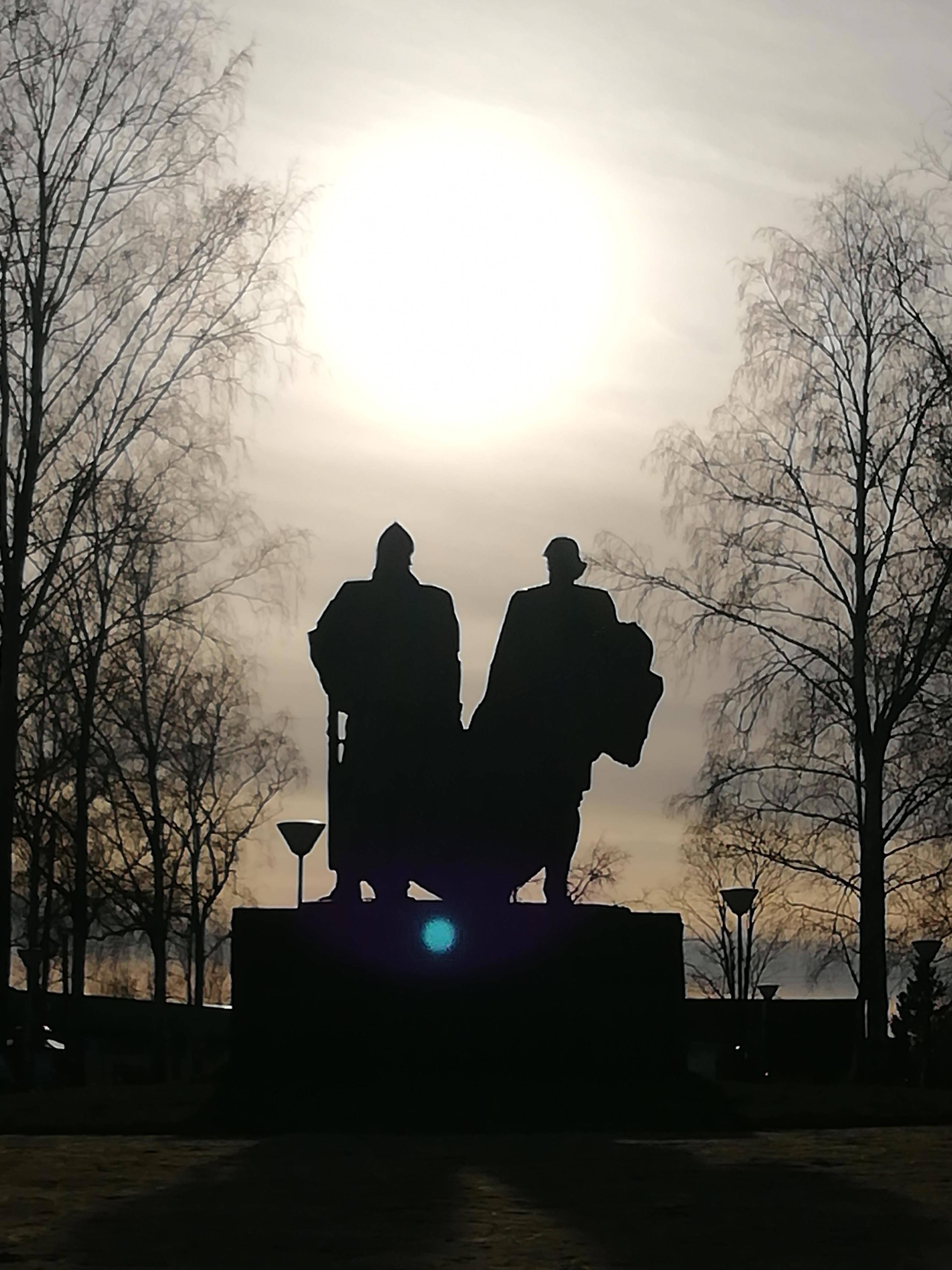 Расположенный тут же совершенно отвратительный памятник Рюрику и Олегу. К сожалению, снимать пришлось против солнца: