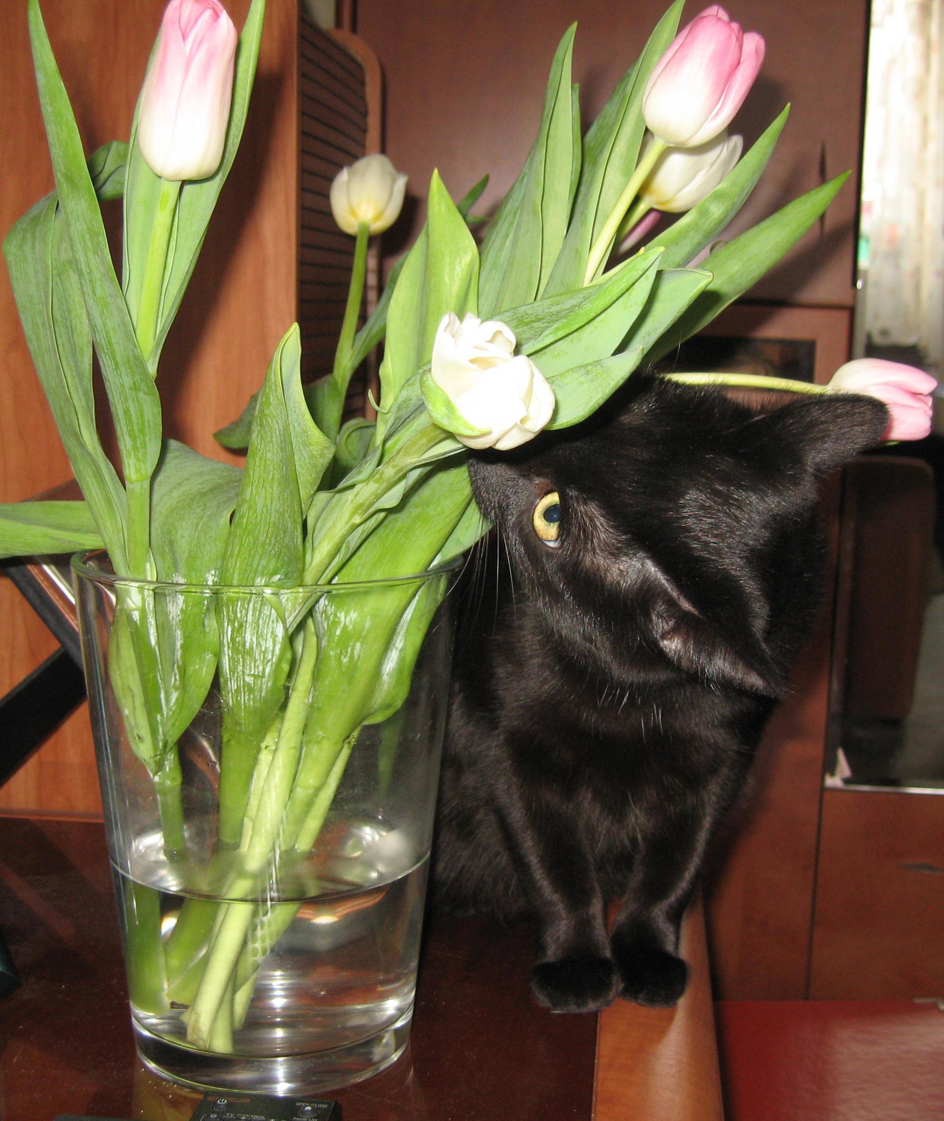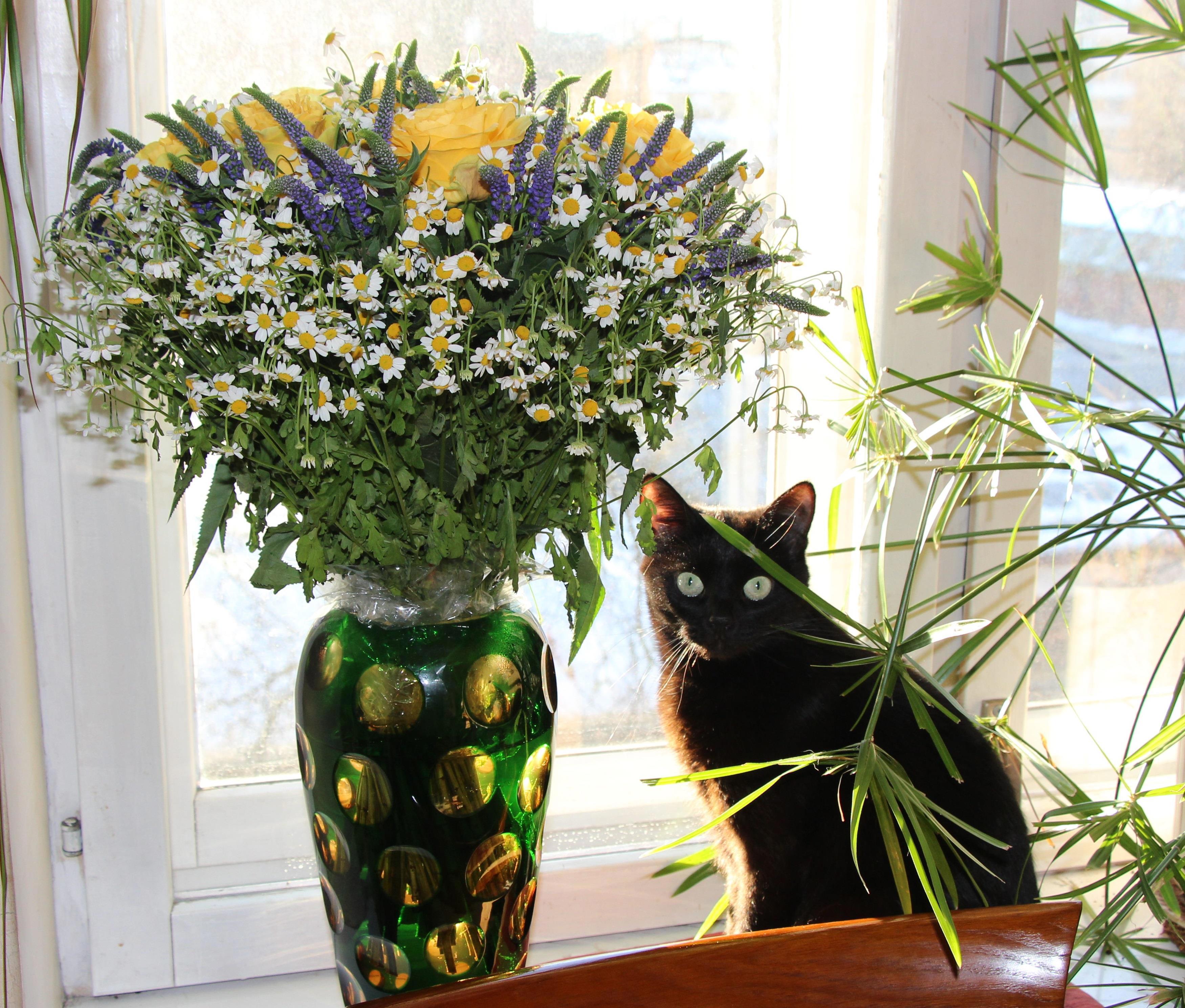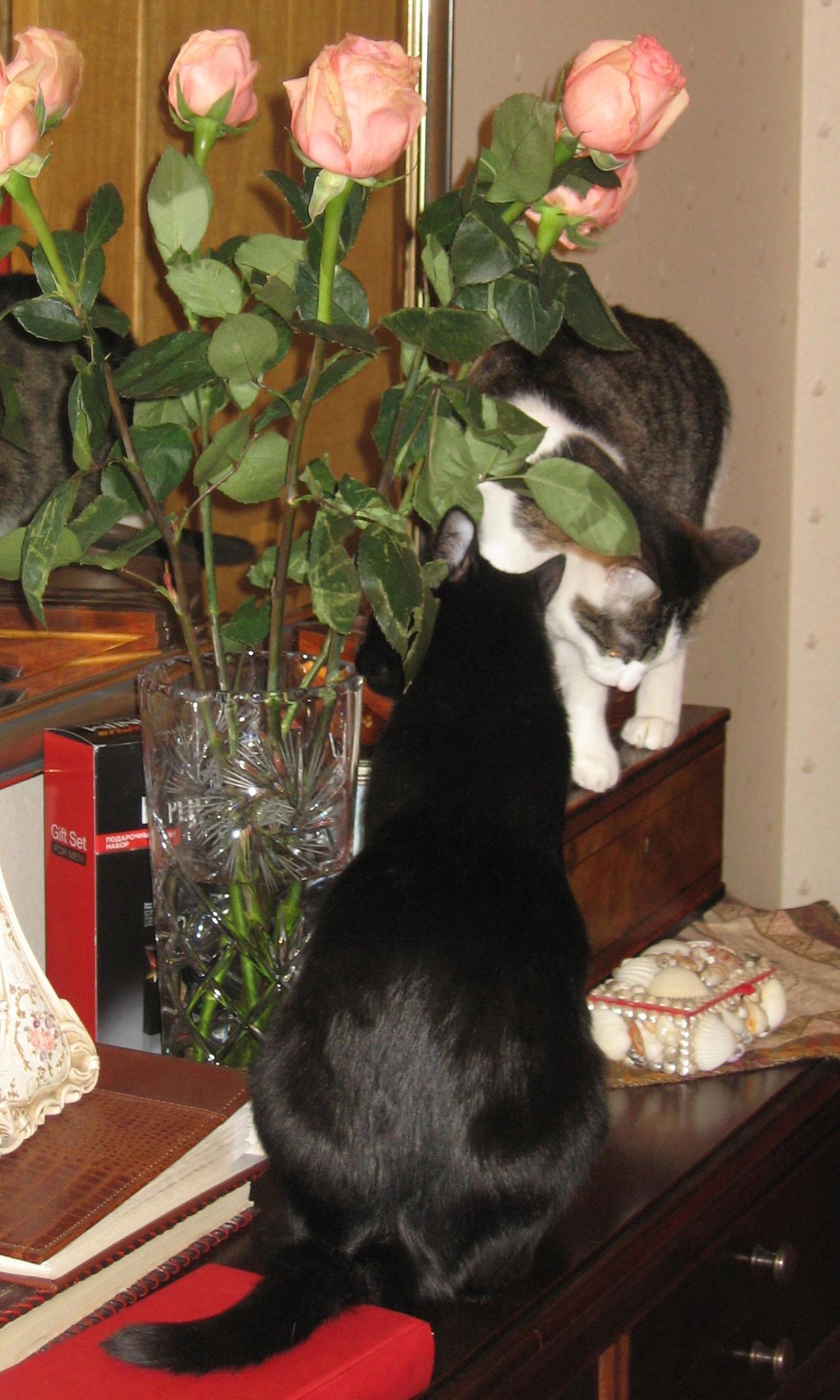Наши кисы, как истинные леди с утончённым вкусом и нюхом, обожают цветы