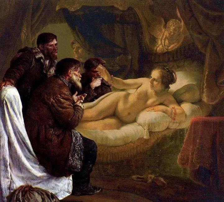Автор: Андрей РябцевКартина Владимира Серова - Рембрандта ван Рейна _ "Ходоки пришли поздравить Данаю с 8 марта".