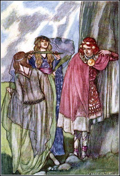 Потому что не птицы то вовсе были, а две морские фейри, сестры Фанд и Ли Бан. А фейри, знаете ли, народ крайне обидчивый. Да и кому понравится, если в него камнями швырять? Спустились сердитые леди с неба, приняли свой истинный облик, изловили обидчика и жестоко избили плетьми. С постели наш герой встал после этого только год спустя, да и то потому, что одна из сестер сжалилась и исцелила его.