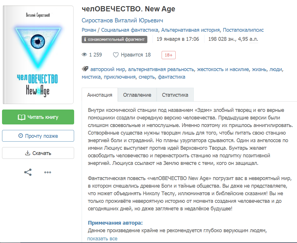 Соответственно, я продолжил работу. При этом роман Сиростанова читать не стал, само собой разумеется, дабы не нарушать чистоту эксперимента. Поэтому о данной книге ничего сказать не могу: попросту не знаю.