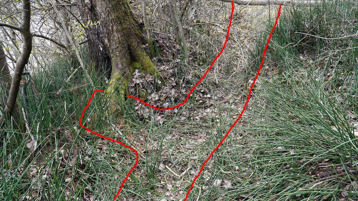 Местность эта заросла Зимующим хвощом, который жёсток, как проволока и мешает использовать металлоискатель. Сейчас, отсутствие другой травы, обнажает прогалы в этой злобной растительности