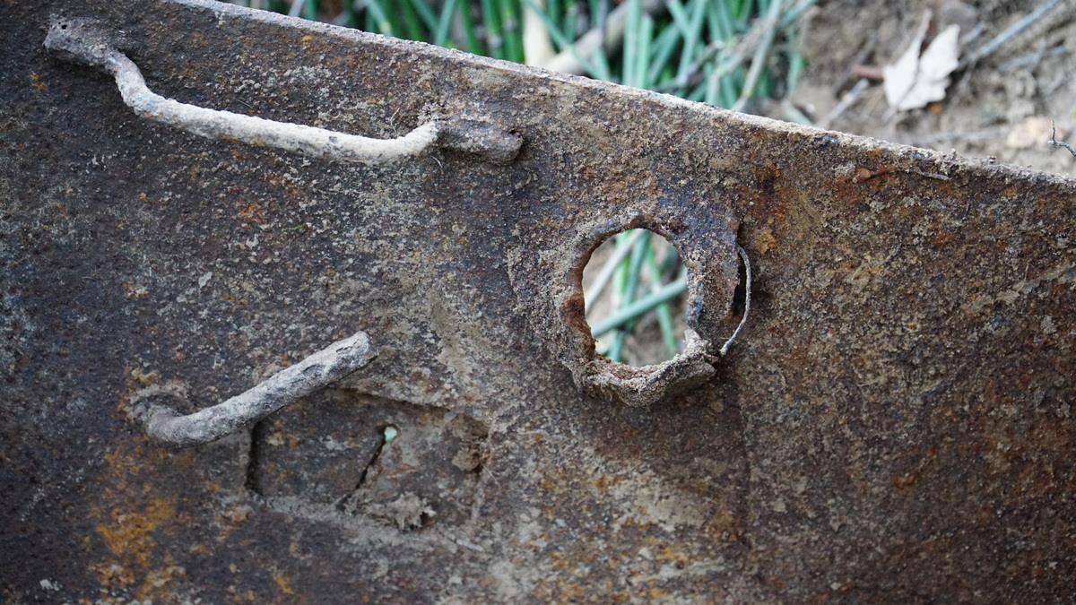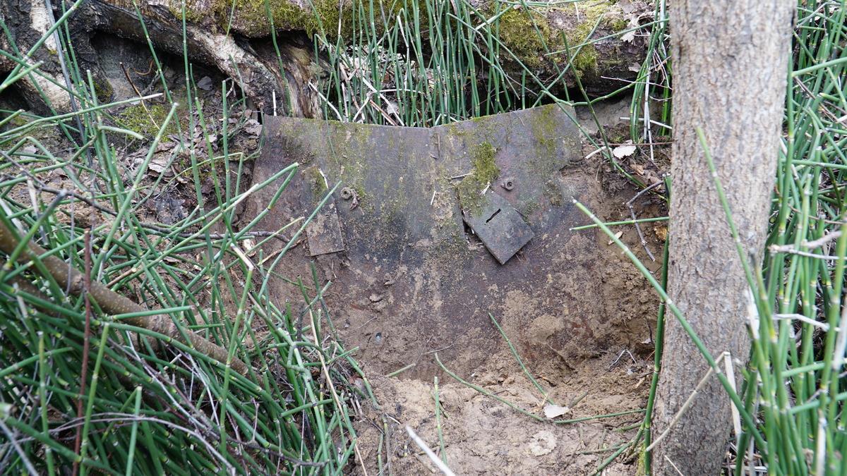 и просто оставить памятником на месте былых боёв. Увы, на свободной территории оставлять такие вещи на месте сейчас нельзя – после покоса хвоща щит стал заметен и быстро уедет в ближайший пункт сбора металлолома, оттащенный туда местными забулдонами.
