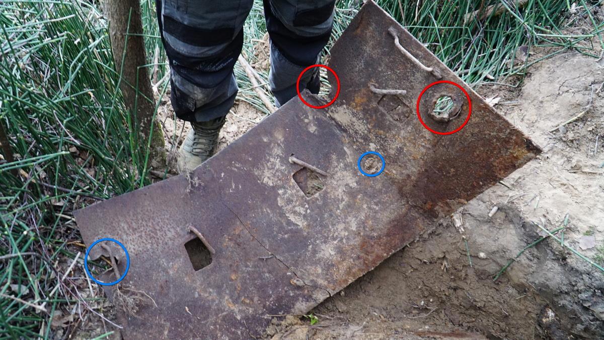 Для меня откровением стала сама стрельба немцев с левого берега прямой наводкой. Обычно они правый берег засыпали миномётными минами и гаубичными снарядами с закрытых позиций. Прямую наводку, напротив, практиковали наши. Кстати, судя по углу попаданий и форме отверстий, по щитку били откуда-то справа, похоже, с территории канонического Пятачка. Если это так, то ориентировочный период, когда состоялась эта «перестрелка» Апрель – Сентябрь 42, время, когда Пятачком снова владели немцы.