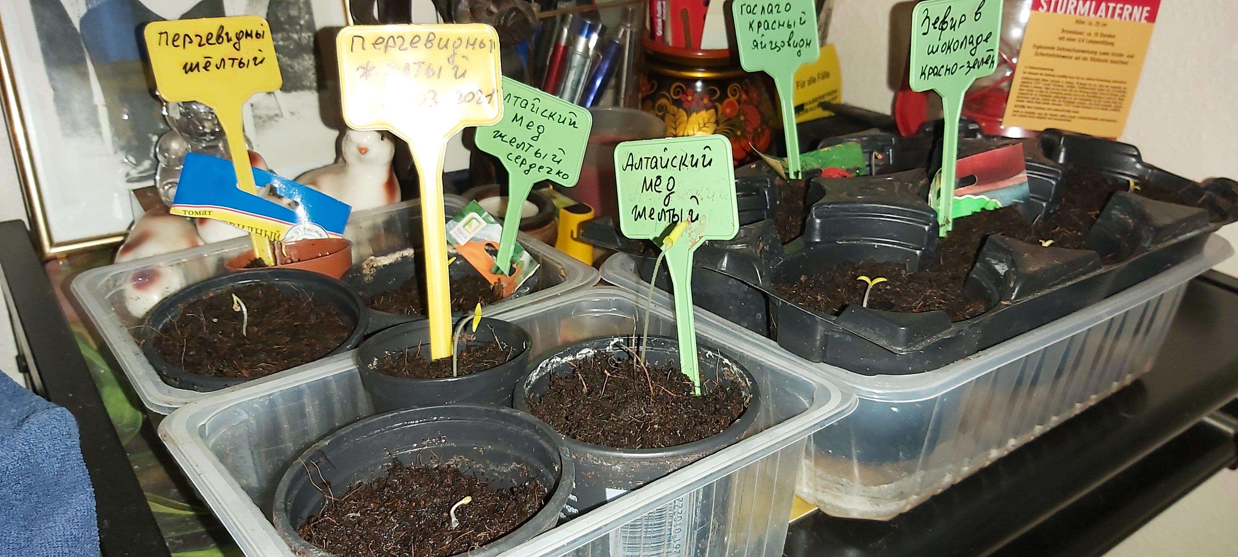 А теперь радость. Помидорчики все взошли.