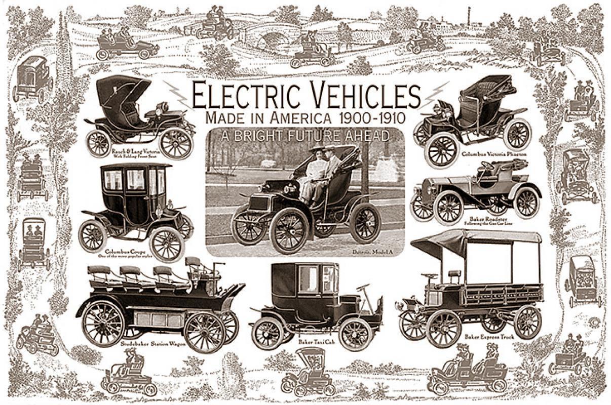C 1900 по 1910 год широкое распространение получили электромобили и автомобили с паровой машиной. В то время из всего количества автомобилей США 38 % имели электрические двигатели, 40 % — паровые, 22 % — бензиновые[5]. Значительное распространение в начале века получили и грузовые электромобили, а также электрические омнибусы (электробусы).
