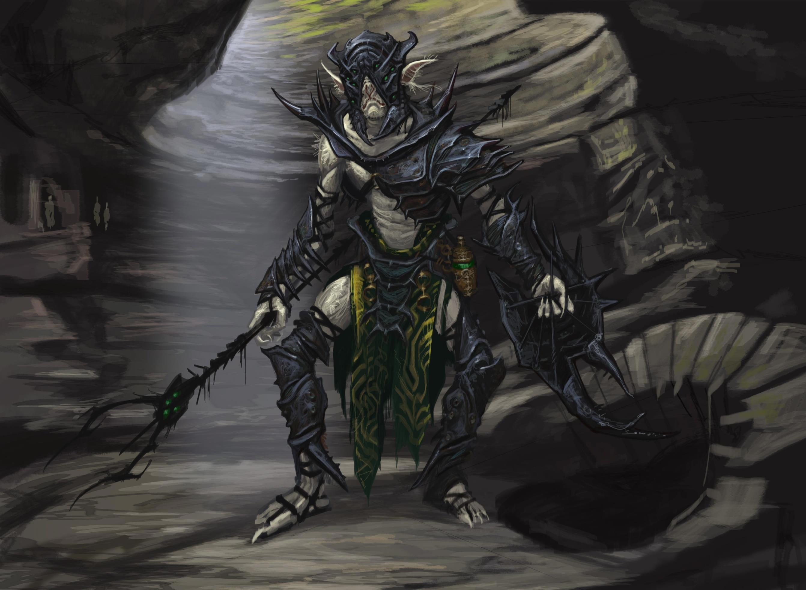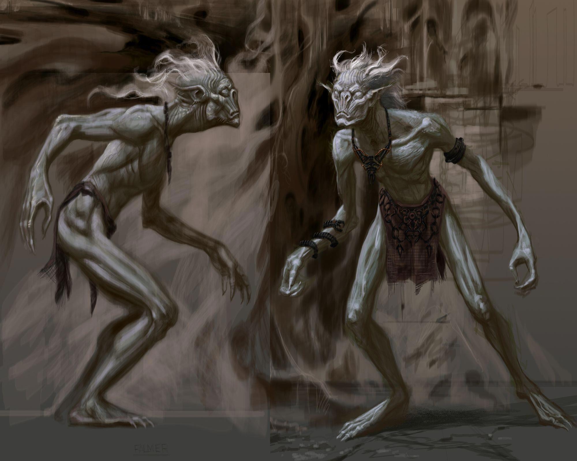 Путешествуя под землей и наслаждаясь видами не надо забывать о разумных или не разумных существах, что прячутся во тьме и с удовольствием готовые с вами познакомиться. Одним из таких разумных существ являются фалмеры. Как их можно характеризовать? Если скейвены вызывают кошмар, дроу ненависть, то фалмеры вызывают ужас. Легкое постукивание, поскрипывание позади и вот вы уже на вертеле, и от вас, еще живого, отщипывают кусочки.