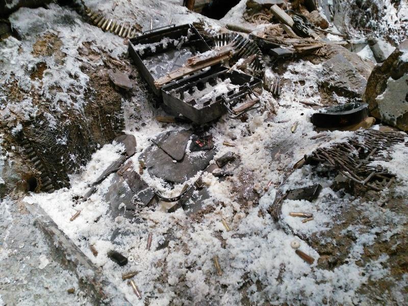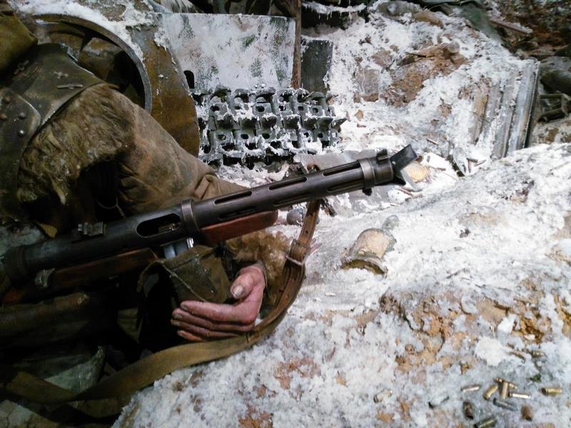 И ленинградская фича - насадка для перебивания пулей колючей проволоки. И тут же вмерзшая в грунт противотанковая граната с прошлого года и свежие гильзы.