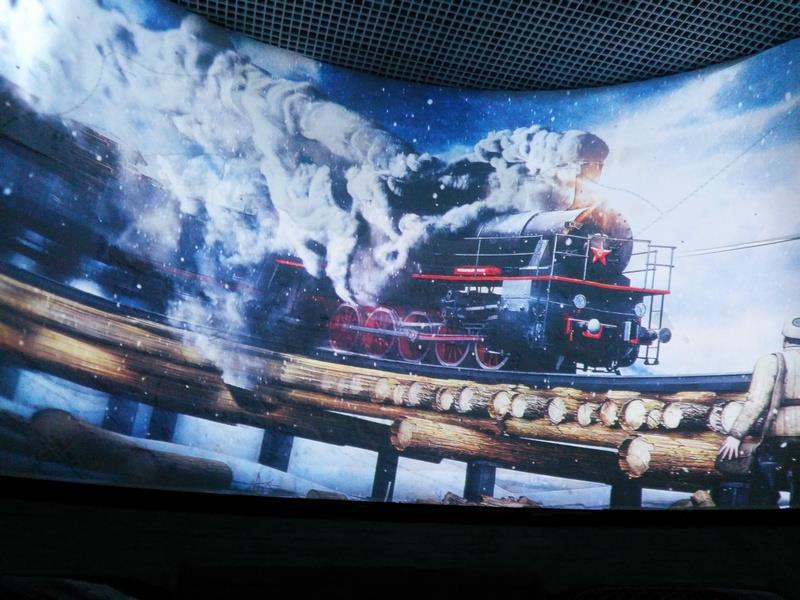 Есть зал с интерактивным показом ситуации. Видно, что старались и исторически достоверно паолучилось. но подкачала графика и особенно анимация.