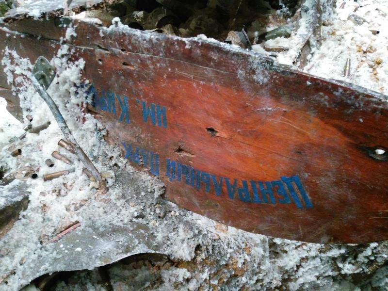 Обломки лодки, на которой переправлялись два года назад - из ЦПКО им. Кирова. Собрать лодки в блокированном городе было очень трудно, да и мало их было.