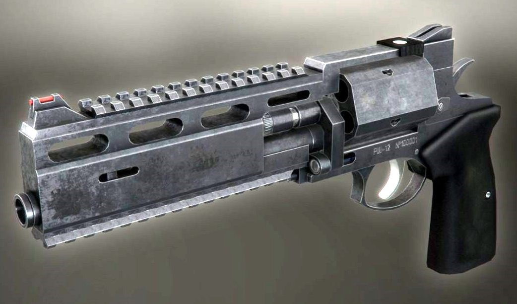 А вот ещё один современный штурмовой револьвер с нижним расположением ствола РШ-12 пулемётного калибра 12,7 мм, сделанный для суровых русских мужиков из спецназа (не пугайтесь – он не заряжен):