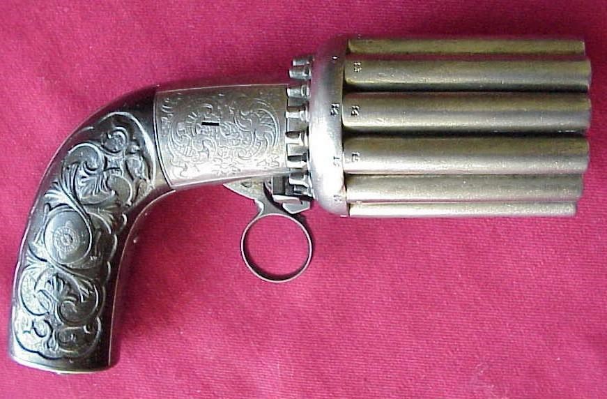 А раньше... Раньше можно найти отчаянную борьбу умов за многозарядное и скорострельное оружие. Самое распространённое — «пепербокс» (перечница). Этот тип долго не сдавал позиций и почти на равных сражался с револьверами всех мастей: