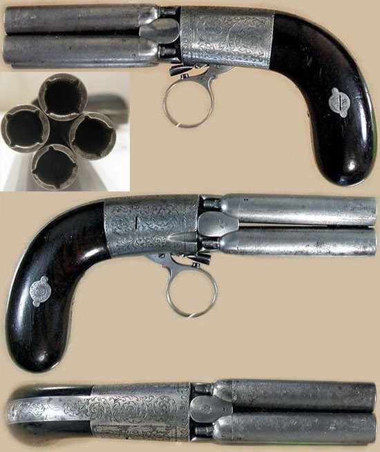 Однако выглядели пепербоксы страшненькими и не совсем удобными. Да и лёгкими их назвать нельзя. Сегодня может показаться, что такое противоставление выглядит странно, однако это, если не учитывать реалии тех времён. Причина равной борьбы была в том, что первые револьверы были ещё очень несовершенны. Дело было в технологии производства. Существовала, например, такая проблема, как несовпадение оси каморы барабана с осью ствола. А вот пепербоксы были от этой проблемы свободны. То есть они выигрывали в надёжности. Хотя и проигрывали по массе и по баллистике. Да и вообще... я думаю, что их тоже вполне можно отнести к револьверам. Да и по второму названию эти пистолеты называли бундельревольверами. И на это у меня есть причины.