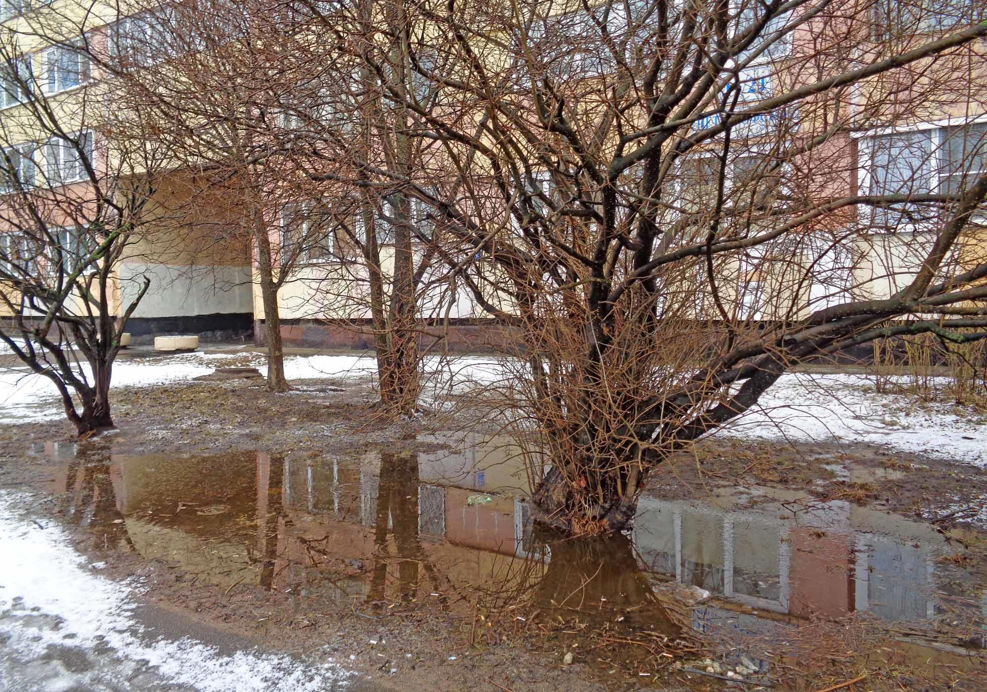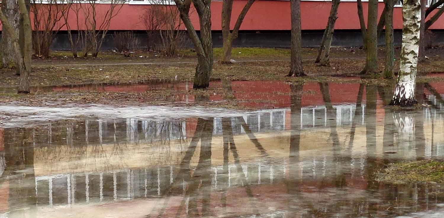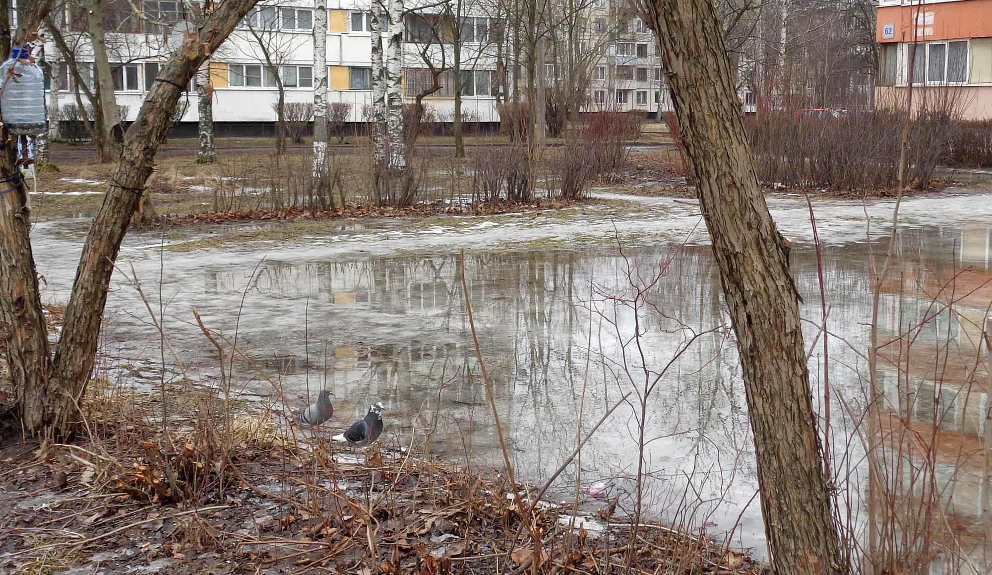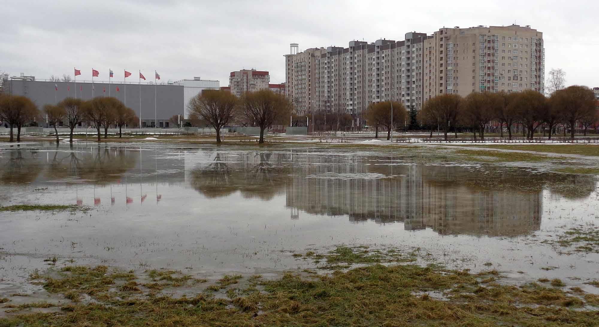 СПб, угол пр. Ветеранов и ул. Добровольцев, затопленный сквер: