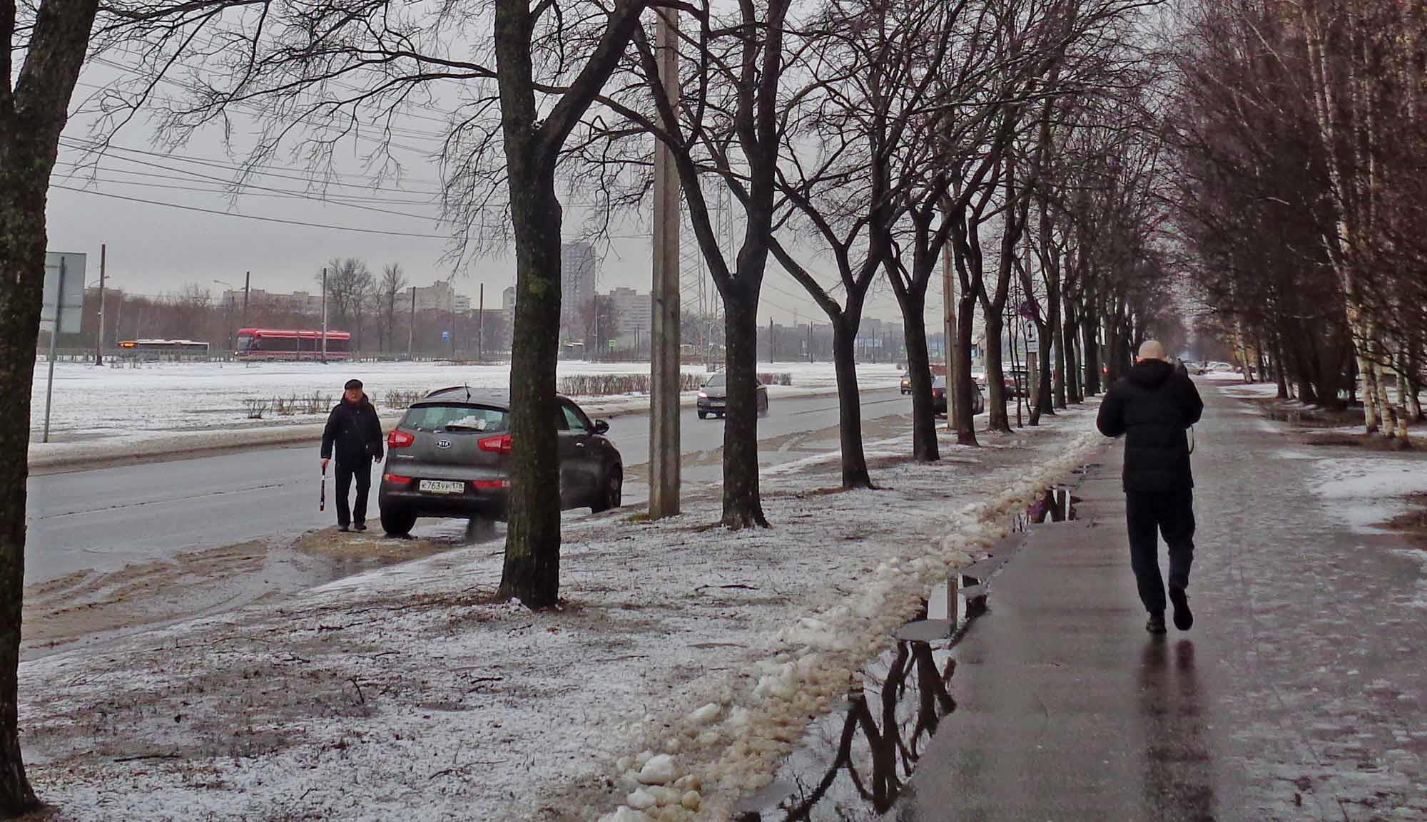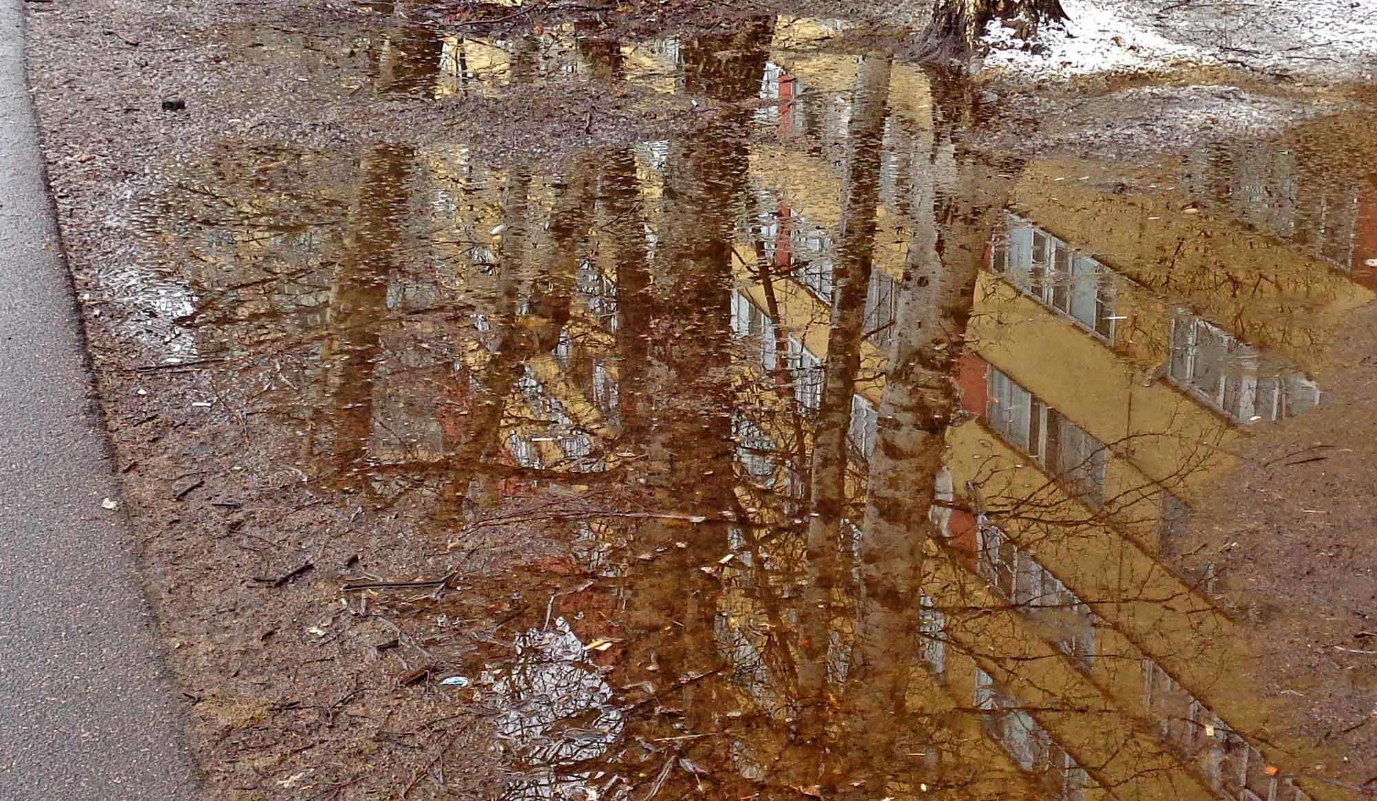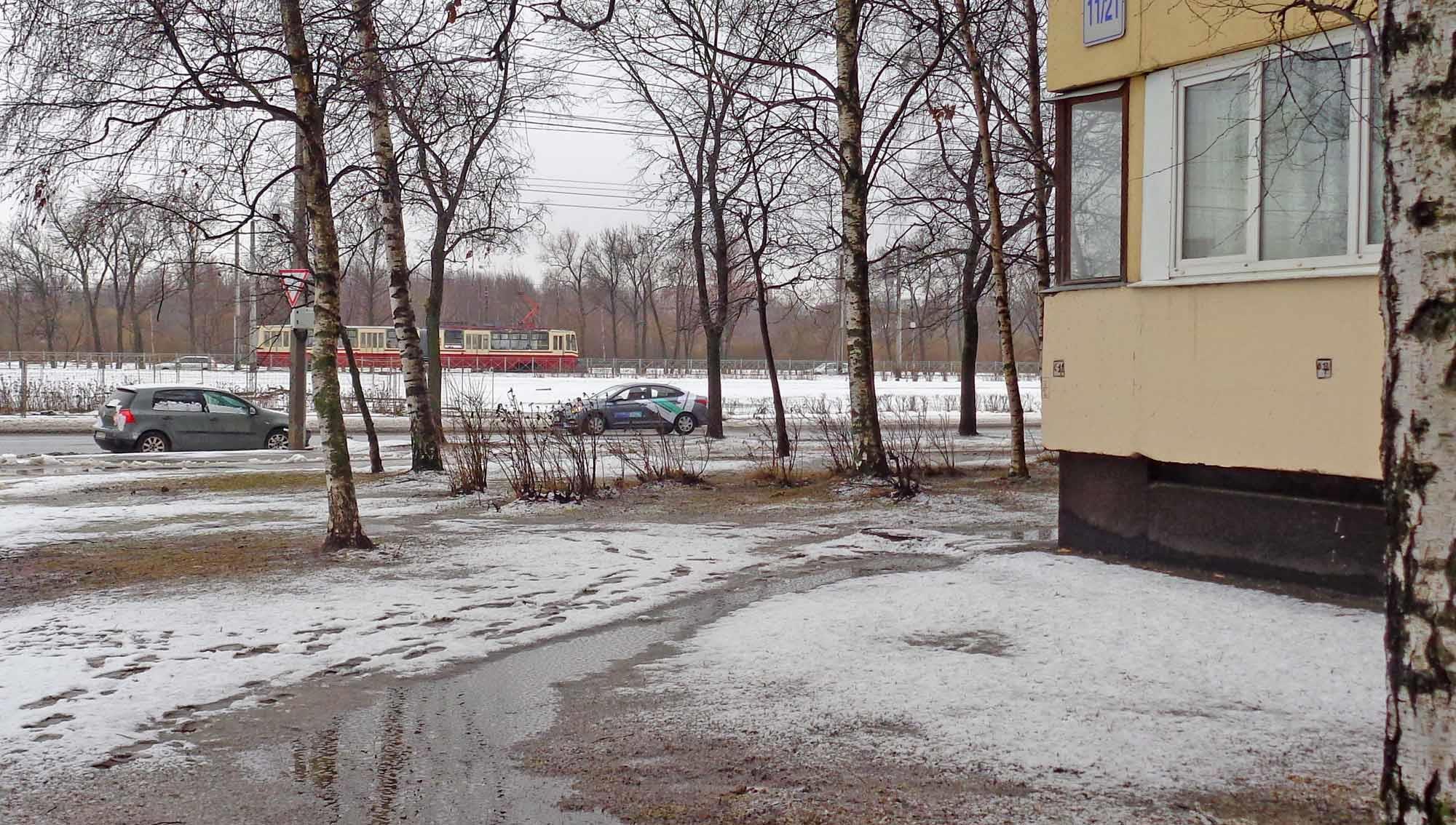 СПб, угол пр. Ветеранов и ул. Добровольцев, затопленный сквер: