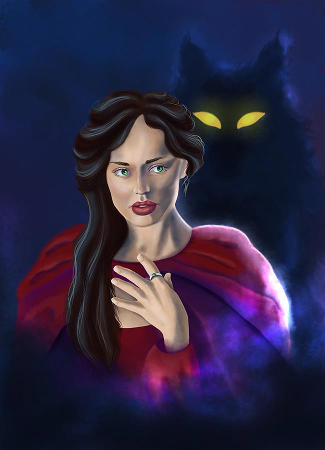 Одну обложку К.Освальд для меня уже рисовала. И я (преодолев стеснение) пошла к художнику в личку. Попросила, чтобы как Лукреция, но брюнетка, а вместо тени волк. Черновик пришел очень быстро.