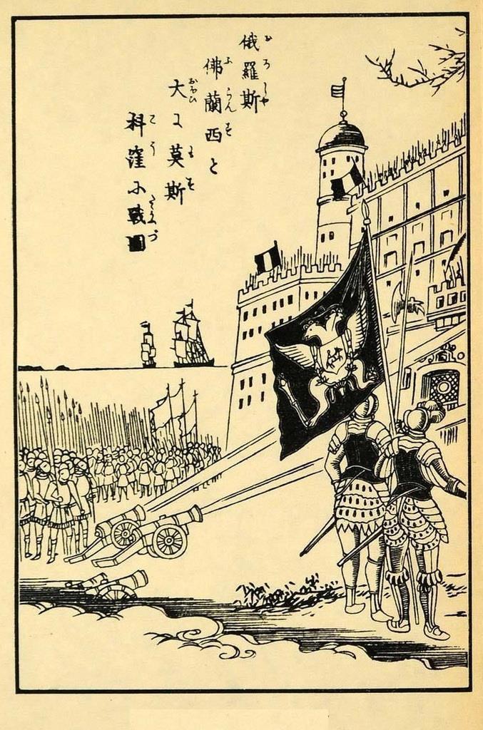 Утверждается, что это иллюстрации к шеститомнику "Краткая история зарубежных стран", изданному в Японии в 1905 году. Я вчера попытался найти упоминания о таком на японском языке, но быстро понял, что мне эта задача не по зубам, так что поверим на слово тому, кто раздобыл эти картинки первым.