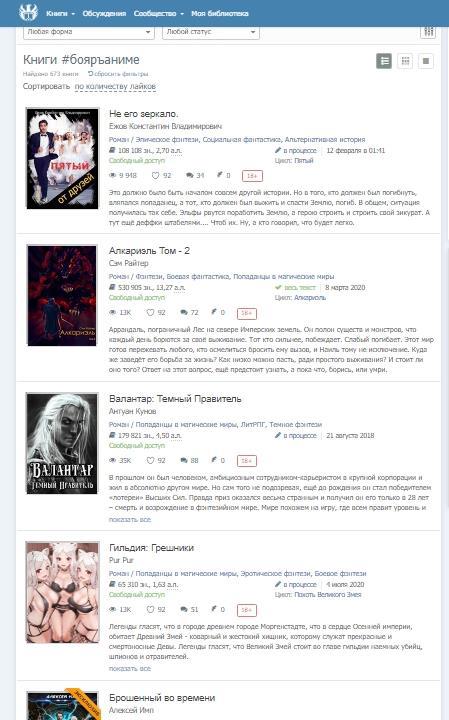 Всего написано 673 книги, самая первая по лайкам - книженция Метельского - человека на втором месте рейтенга АТ, и также известного в узких кругах своей адски продвинутой рекламной компанией. И да, она имеет почти 10к лайков! А теперь не мудрствуя лукаво, переползаем на, скажем 20 страницу, и видим... книги со средними по больнице значением лойсов - меньше ста.