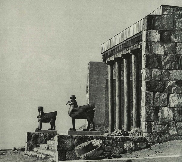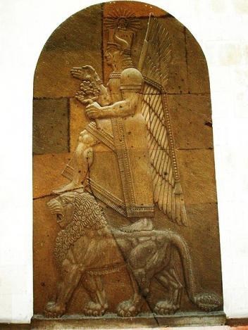Духи-хранители дворца армянских царей: слева крылатый лев с человеческим лицом, справа гриффон. /крепость Эребуни (Ереван)/