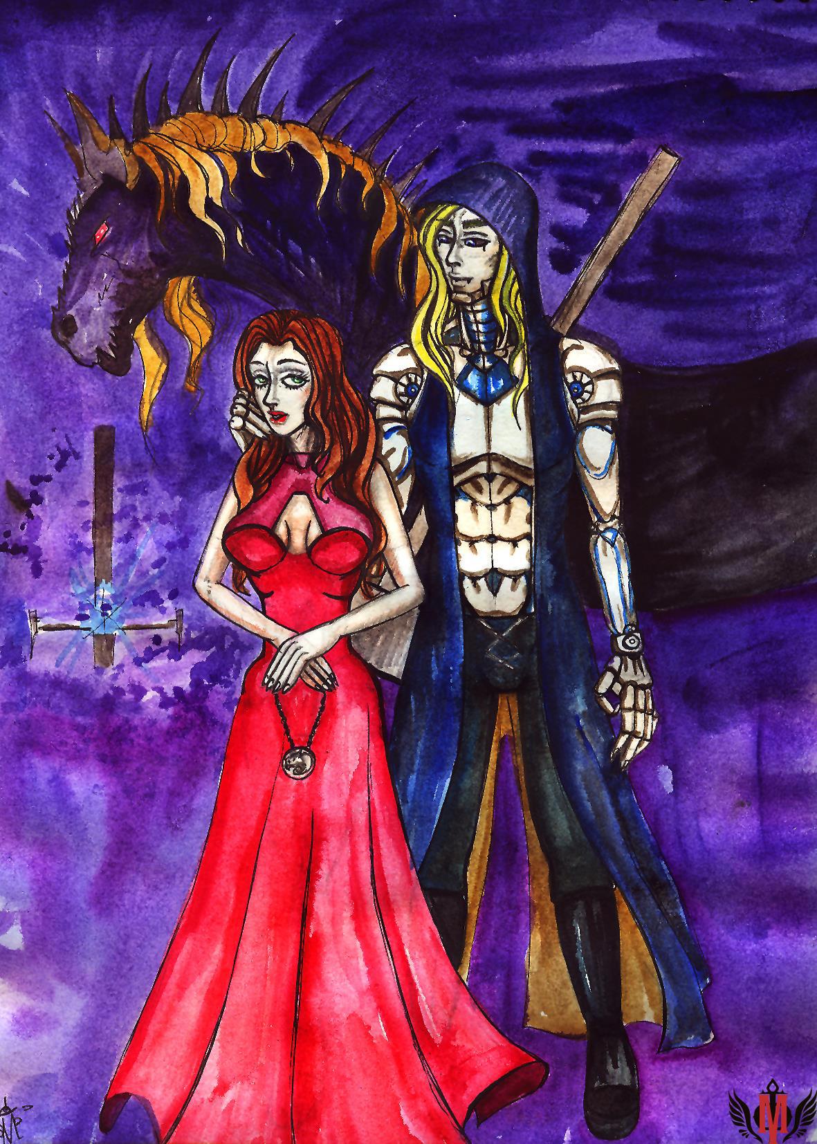 Прям так близко, даже интимно ей не доводилось разглядывать киборгов, а то что перед ней был он стало понятно по полностью металлизированному телу, где движимые части крепились шарнирами, а мышцы заметил какой-то синтетический аналог. Эвелина медленно подняла взгляд на лицо кибера и вздрогнула. Потому как лица там как такового не было, остался лишь металлизированный череп. С горящими в сумраке глазницами. А клыкастый оскал волей не волей заставлял сравнивать кибера с демоном, если бы Эвелина была верующая, то точно перекрестилась. На голову киборга надвинут чудом уцелевший капюшон, а вот остальная одежда превратилась в бесформенные клочья ткани, безвольно повисшей на броне. Девушка не могла отвести взгляда от острых клыков, по форме очень похожих на кошачьи, и состояние из радужного метала, из которого состоит весь череп. Эвелине стало интересно, а насколько они острые.