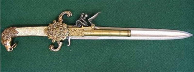 Вот с этого можно сказать всё и началось. Однако в те времена такие штуки делались всё же на заказ для непростых клиентов. Делать из них серьёзные выводы никак нельзя. Серьёзный вывод получился всего один раз, когда кто-то то ли к аркебузе, то ли к пищали прикрепил наконечник копья – и начал свою долгую службу армейский штык.
