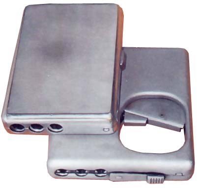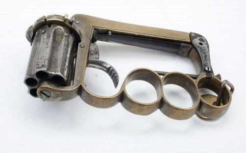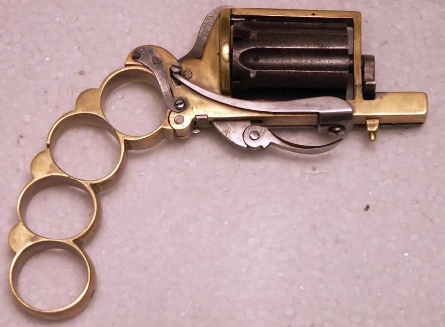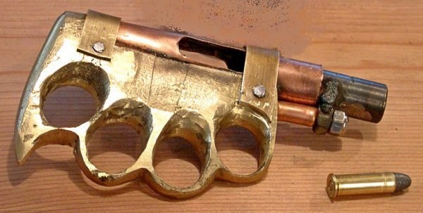 Короче всяких-разных «дерринджеров» стало так много, что он стал узнаваем, а потому частично потерял своё главное преимущество – эффект неожиданности. Нужно было такое же, но не такое, чтобы не сразу узнали. Вот один такой пистолетик-кастет, в котором оружие не сразу и опознаешь, а когда опознаешь, то будет уже поздно:
