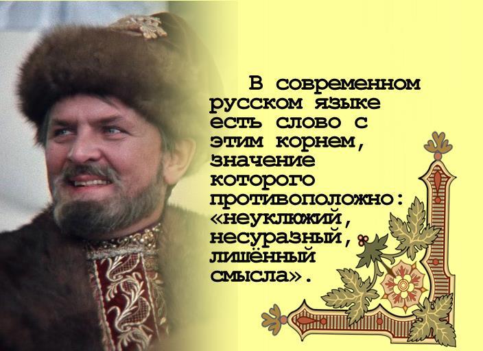 Царь Иван Васильевич два раза употреблеяет слова с забытым корнем, означавшим "красивый, хороший". Сумеете ли вы вспомнить хотя бы одно из этих слов, сказанных в фильме?