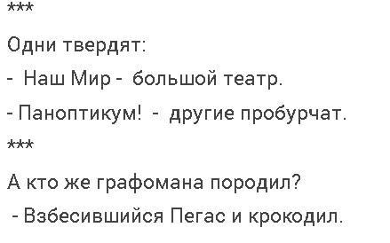 Хочется отметить также очень удачные шуточные двустишия, вызывающие у читателя улыбку и хорошее настроение:
