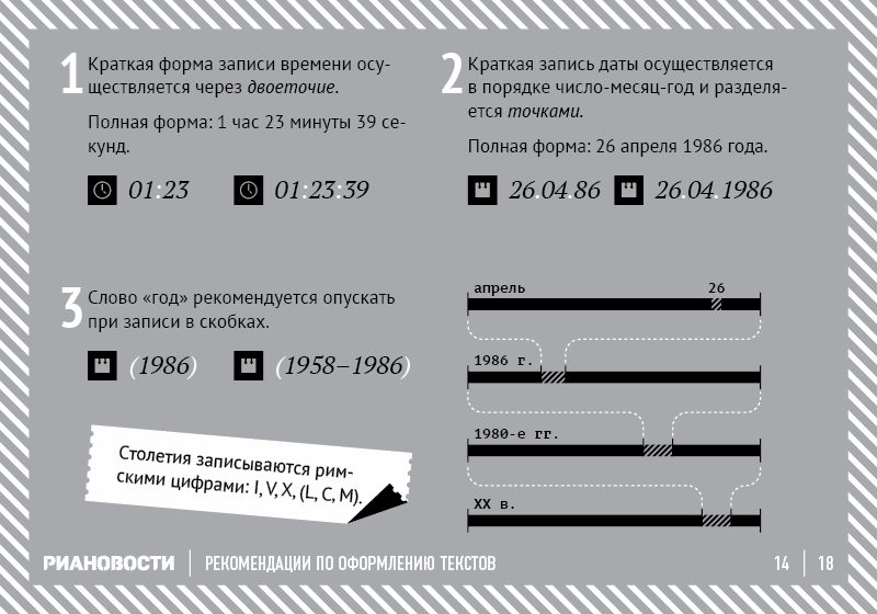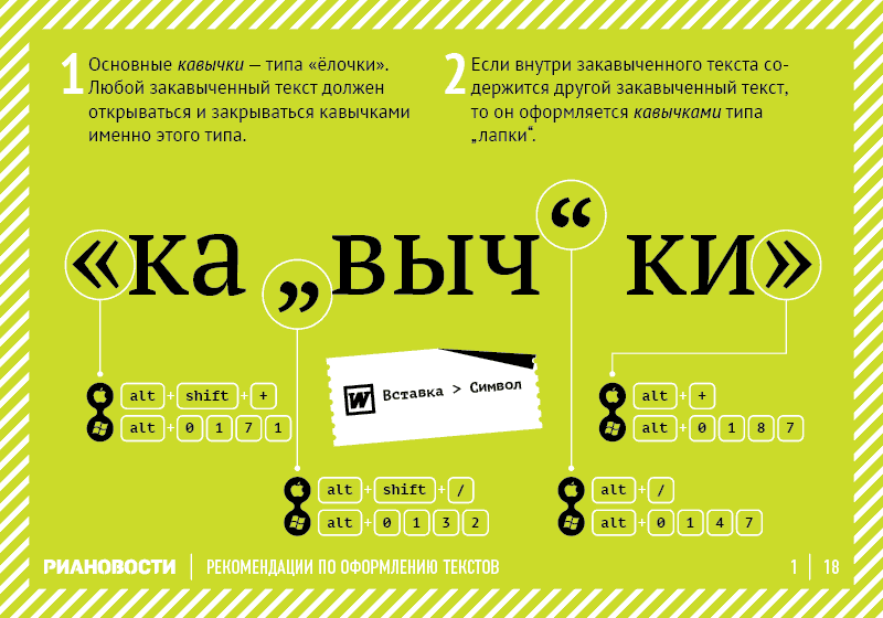 В своих странствиях по поиску верного оформлению текста я наткнулся на очень интересную памятку от РИА Новости.