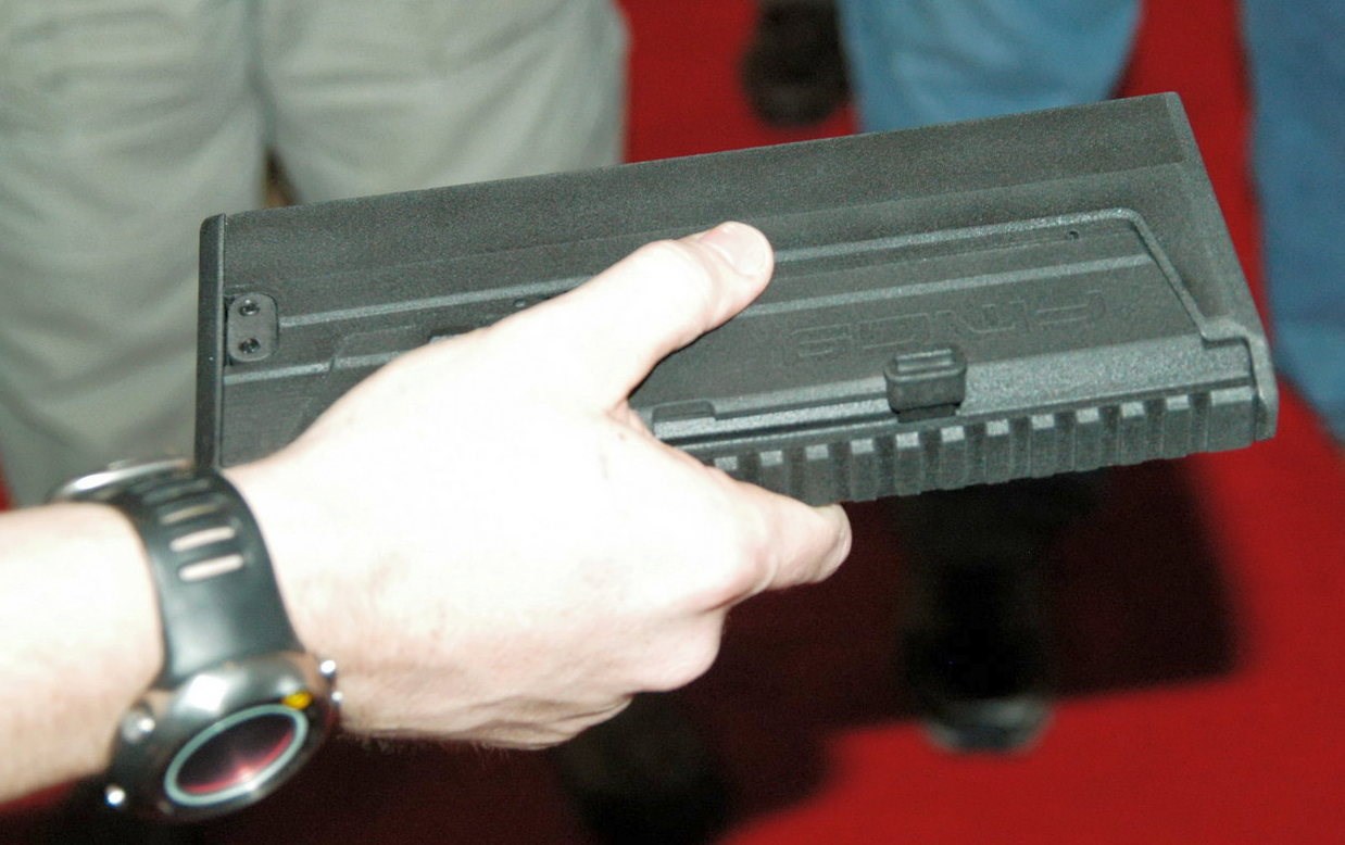 Но на деле никакую не телекамеру, а вполне себе автоматический 9 мм калибр: