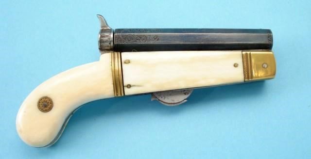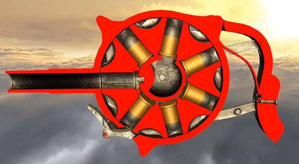 Одно плохо – выстрел можно было сделать всего один... Оставшиеся в живых пользователи обратились к оружейникам, мол – а побольше патронов можно? Те говорят – конечно, можно! Только деньги платите! Пользователи побежали, ограбили пару дилижансов, а когда вернулись (кто жив остался), то их уже ждала вот такая симпатичная штука. Даже на оружие как-то не похоже. Скорее нательная иконка-складень, или коробочка с портретом любимой тёщи у неверующих: